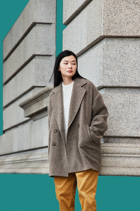 今回発売する「RAXA playful」初となる秋冬企画では、リラックスしたオーバーシルエットを継続しながら、セットアップやシャツ、ニット、コートなどを展開。今シーズンは22年春夏企画の13品番から、25品番に拡大しコーディネートを訴求していきます。また、よりファッションを楽しんいただくため、新たにジェンダーレスファッションを取り入れたスタイリングも提案しています。トレンドであるオーバーシルエットに加え、シンプルな裏起毛素材のセットアップやクラシックなダブルブレストのハーフ丈コート、アクセントとなる鮮やかなカラーのニットなど、生地の選定からパターン調整まで細部にこだわった『今“ちょうどいい”服』を提供します。