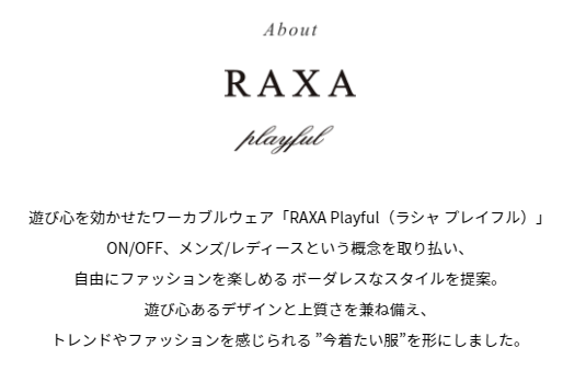 ■ 遊び心を効かせたワーカブルウェア「RAXA playful(ラシャ プレイフル)」