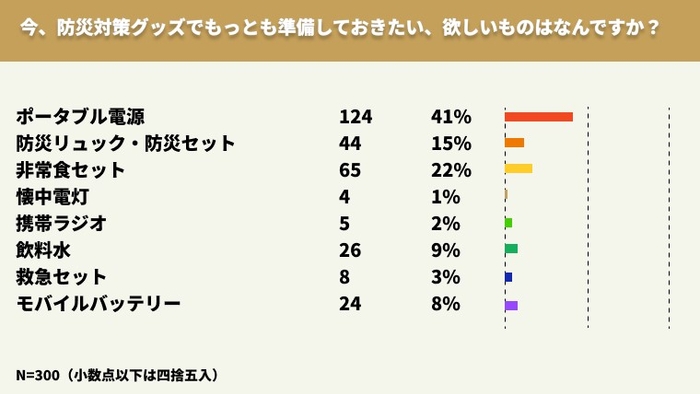 全国の男女300名に聞いた防災意識実態調査「今最も欲しい防災グッズはポータブル電源」
