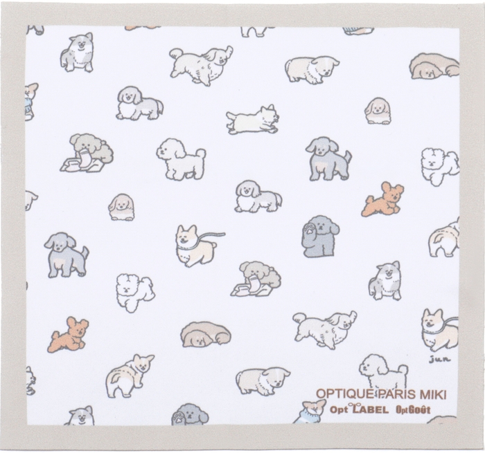 フレームの内側には、じゅんさんデザインのワンちゃんたちがいろんな表情で顔を覗かせ、メガネと一緒に寄り添ってくれます。