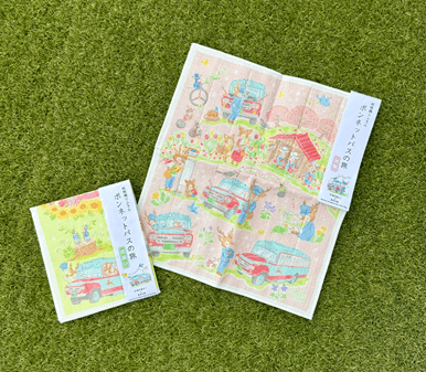 ~鹿作家めぐ×丸山繊維産業×奈良交通~ 蚊帳織りふきん「ボンネットバスの旅」発売