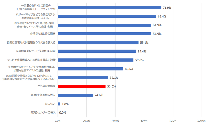 95%の人が地震で被災すると考えているが、耐震補強工事の実施率は33%
