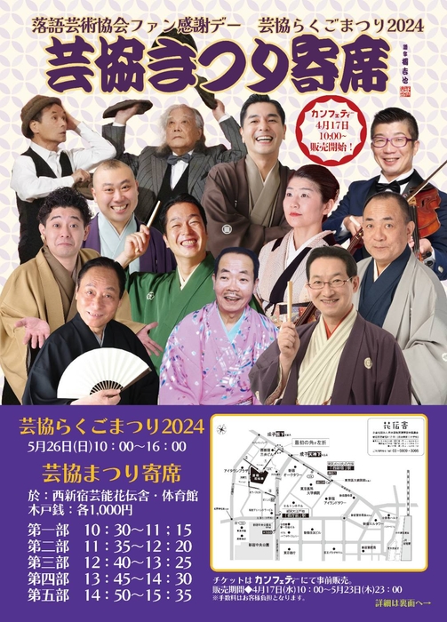 芸協らくごまつり実行委員会/公益財団法人落語芸術協会/(株)オフィスタックル主催、芸協らくごまつり2024『芸協まつり寄席』が2024年5月26日(日)に芸能花伝舎・体育館(東京都新宿区西新宿6-12-30 芸能花伝舎 A棟2F)にて開催されます。