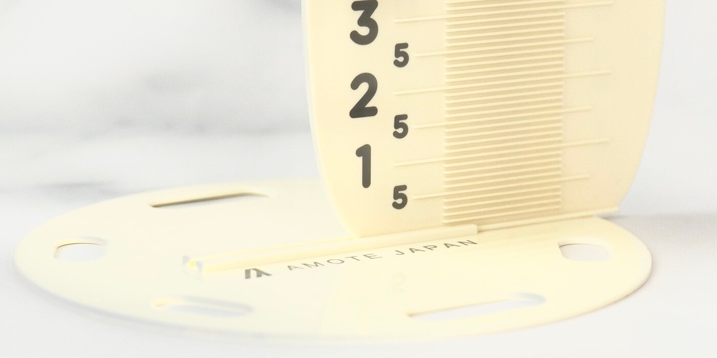 「ピッ炊く」の使い方はとてもシンプル。まずは洗ったお米と、お米がつかるぐらいの水を炊飯釜に入れます。お米を平らにならした上に「ピッ炊く」を置いたら計量の準備は完了です。「ピッ炊く」には1mm単位で目盛りが刻まれているため、最初に炊いたときに、どの目盛りまで水を入れたか覚えておけば、2回目からは水加減を細かく調整でき、ご飯を好みの硬さに仕上げられます。ダイエット中の炊飯は、お水を少なく入れることで糖分カットが期待できます。お手入れが簡単で、コンパクトなのも「ピッ炊く」の特長です。フックなどに掛けても、置いて飾ってもかわいいデザイン。