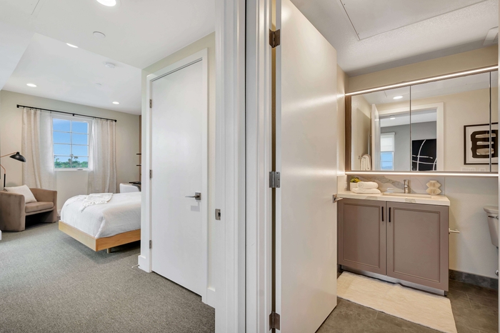専有部には、全タイプにウォークインクローゼットを採用し、広々とした収納をお使いいただけます。室内設備は、冷蔵庫や洗濯乾燥機、LEDダウンライトを備え付けており、引越しの際の取り付け撤去の手間が減ります。さらに、外出中でも自動で室温調整が可能な「Nest Learning Thermostat」を設置し、節電を実現できます。