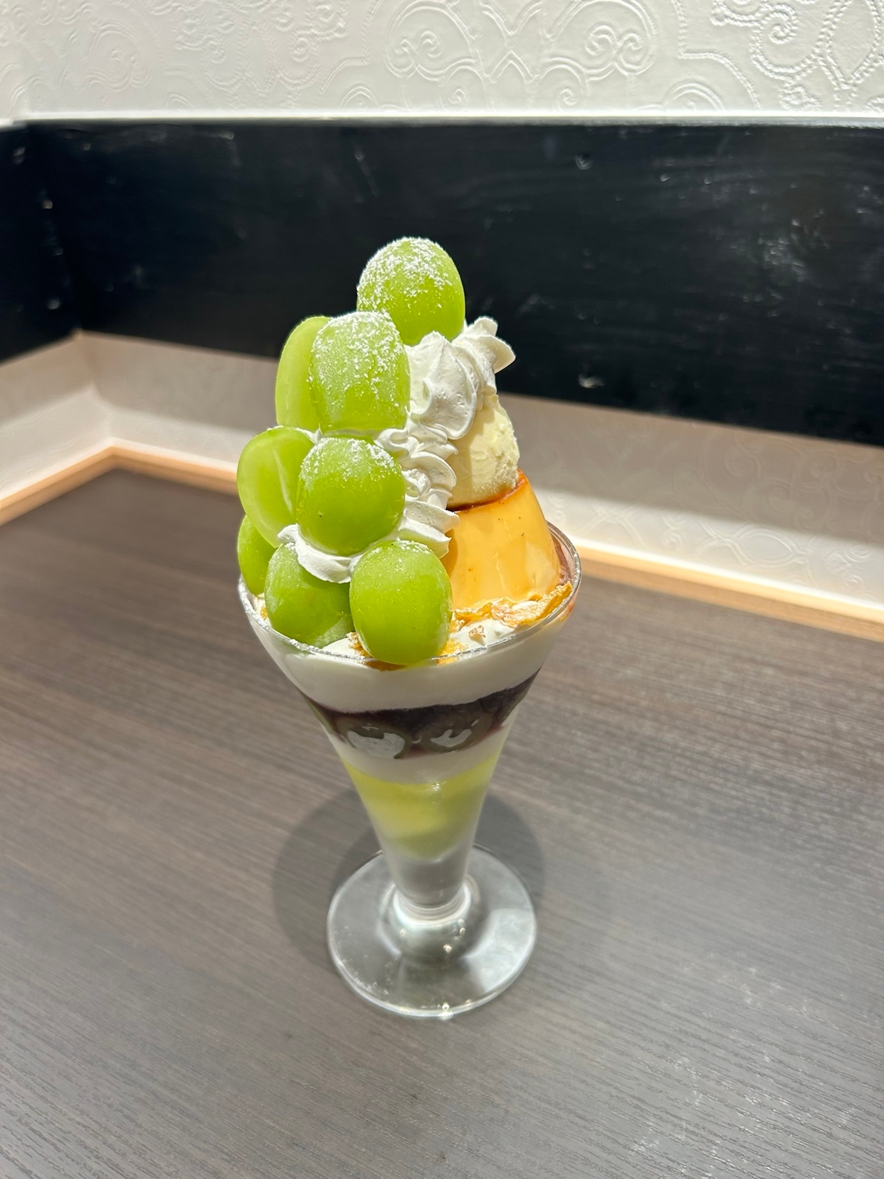 驚きの11層仕立て!「プリン専門店のシャインマスカットプリンパフェ」とは