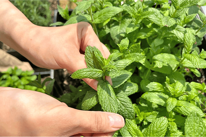 選んだレシピに必要なハーブを、必要な枚数摘み取りましょう。