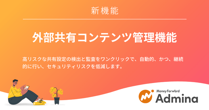 マネーフォワードi株式会社が提供するSaaS管理プラットフォーム『マネーフォワード Admina』において、外部共有コンテンツ管理機能の提供を開始しました。本機能では、連携したストレージサービスにおいて外部共有されているファイルを自動で検知し、アラートでお知らせします。