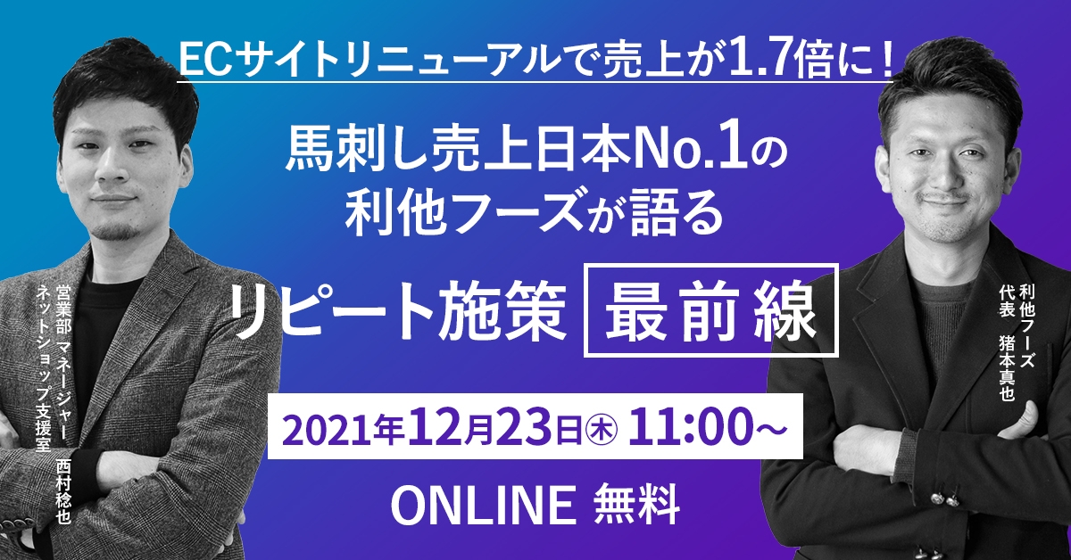 【12/23オンライン開催】ECサイトリニューアルで売上が1.7倍に!馬刺し売上日本No.1の利他フーズが語るリピート施策"最前線"
