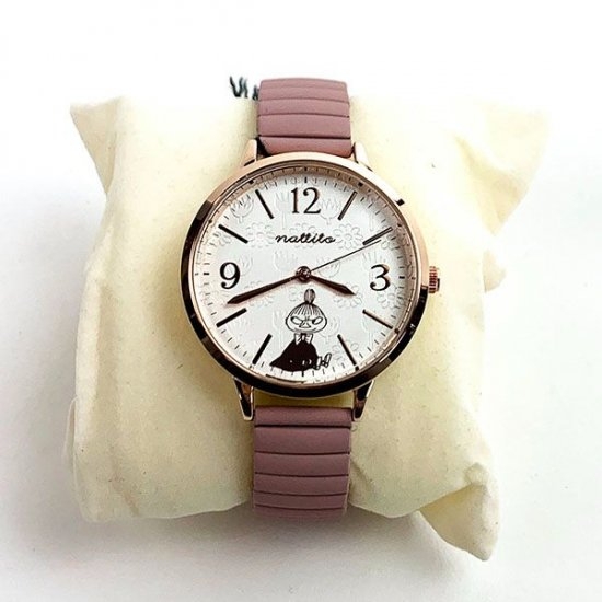 ムーミンから、リトルミィデザインのカービングジャバラウォッチのご紹介です。ラウンドフェイスの文字盤に、ベルト部分が伸縮性のあるジャバラになった腕時計です。つけ外しが簡単でデザインもとってもキュート。