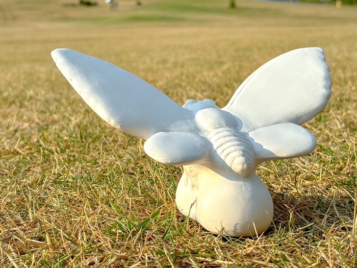 ゴジラ迎撃作戦オリジナルモスラの真っ白な素焼き人形に、自由なデザインで色を塗るアート体験。
