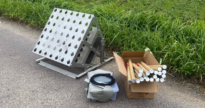 総勢17名にて作業を行い、雨水が花火に影響を及ぼさないようビニールにて防水加工を施しながらの作業となりました。