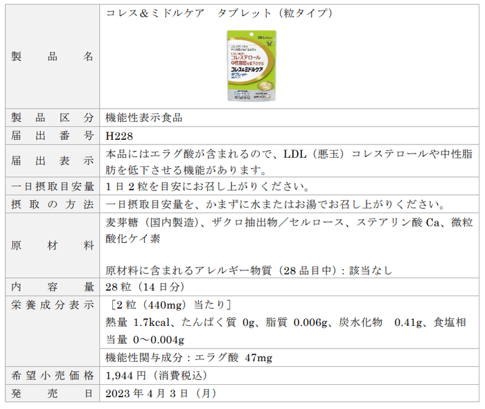 大正製薬株式会社[本社:東京都豊島区 社長:上原 茂](以下、当社)は、セルフケア応援ブランド『Livita(リビタ)』の生活習慣ケアシリーズから、機能性表示食品の「コレス&ミドルケア さらっとおいしい青汁」と「コレス&ミドルケア タブレット(粒タイプ)」の2品を4月3日(月)より、新発売いたします。