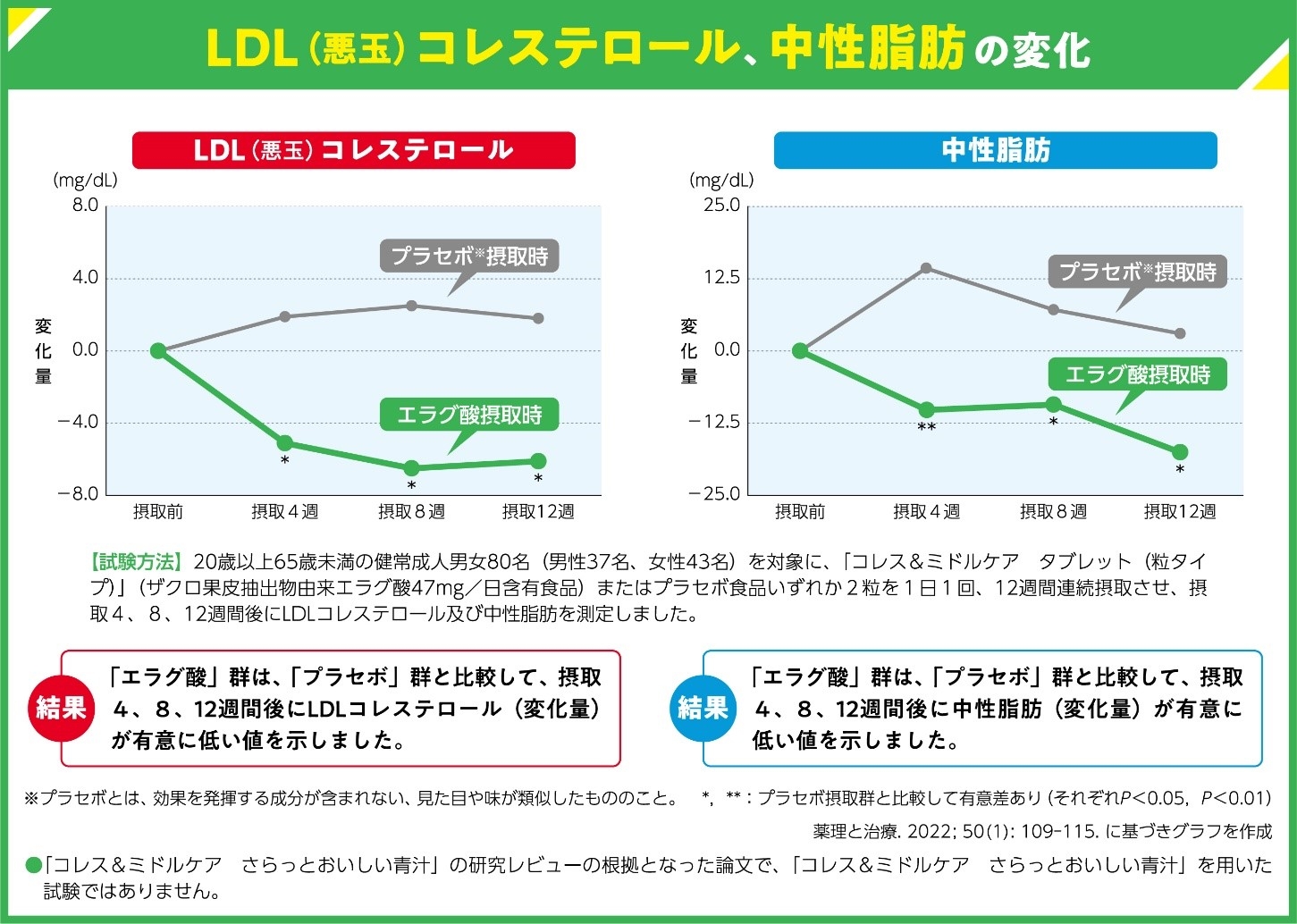 LDL(悪玉)コレステロールと中性脂肪をまとめてケアできる エラグ酸含有の青汁とタブレットが新登場!