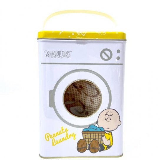 チャーリーブラウンの洋服型ネットが入ったスヌーピーお洗濯2点セット♪洗濯機の窓からのぞくお顔にくぎ付けの缶入りが嬉しい!正直可愛すぎて私が欲しいって感じ。。。