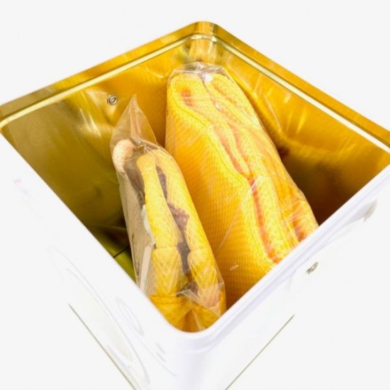 開けるとネットが2つ。上から見ると分かるように缶は四角で結構大きいんです♪ネットを出したあとは小物入れやお菓子を入れたり、色々と使い道がありそう!もちろん洗濯ネット入れとして使うのもランドリスペースに合っていい感じです♡