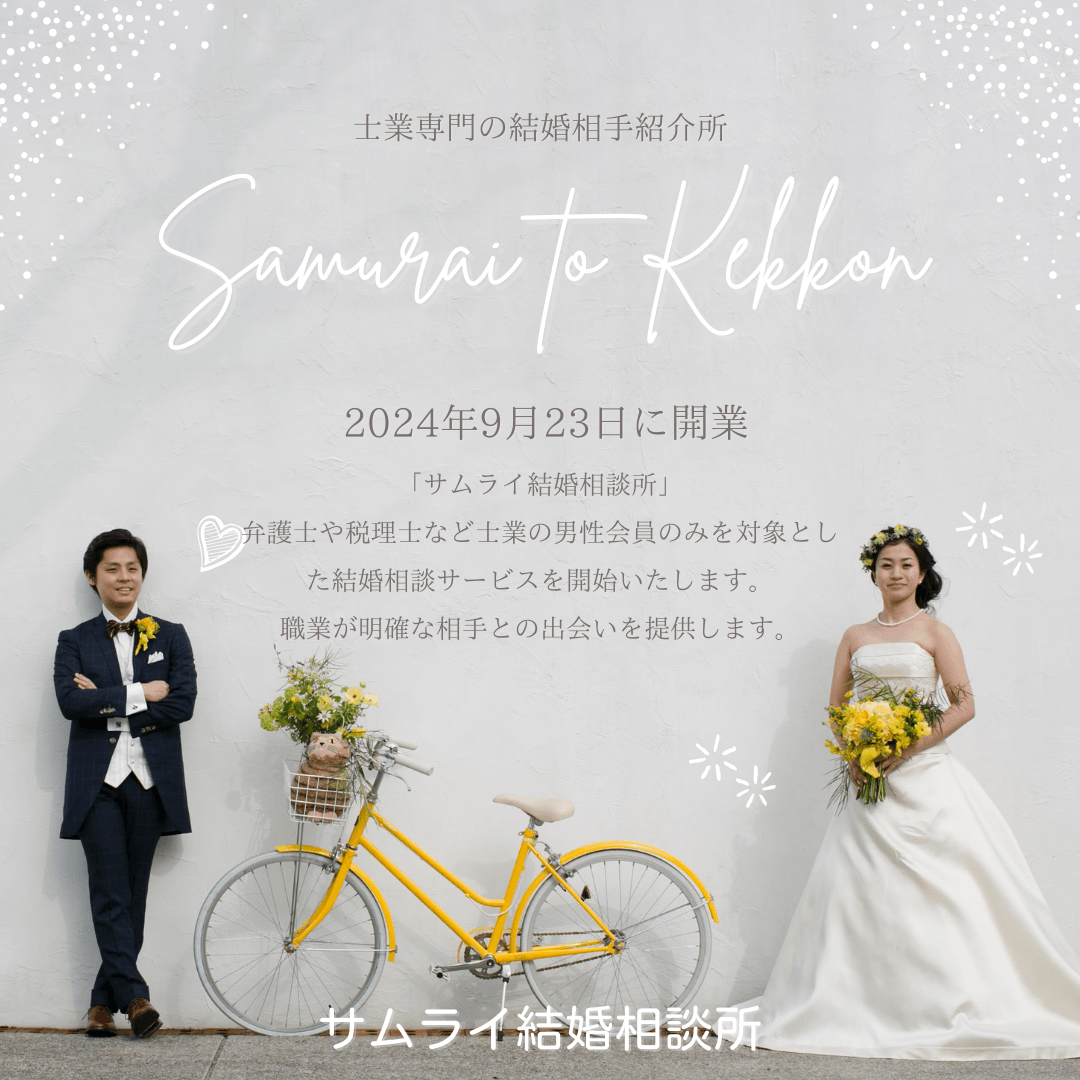 ウェブ関連事業を行う株式会社アット・イーズ(所在地:大阪府大阪市北区、代表取締役:木村 裕道)は、弁護士や税理士など士業の男性会員のみを対象とした結婚相談サービス「サムライ結婚相談所」を新たに立ち上げ、2024年9月23日より会員の募集を開始いたします。