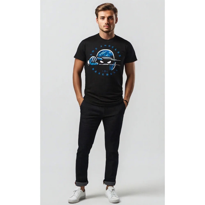 シンプルなブラックボディに、ドジャースブルーのシルエットが映える、スタイリッシュかつ存在感のある一枚です。
