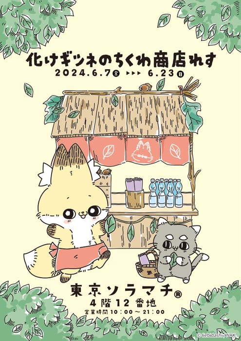 『化けギツネのちくわ』の商品を販売するポップアップショップ「化けギツネのちくわ商店れす」の開催が決定いたしました。2024年6月7日(金)から6月23日(日)の期間、東京スカイツリータウン内にある商業施設「東京ソラマチ®」にて開催いたします。なお、『化けギツネのちくわ』のポップアップショップを開催するのは今回が初めてです。
