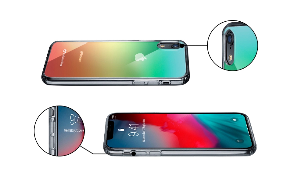 背面にプリズム加工が施されており、光の角度によってオーロラのように色が変化する美しいデザインのiPhoneケース。