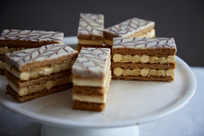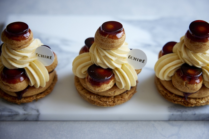 エシレ バターを使ったカスタード クリームとバター クリームを、香ばしく焼き上げたパイ生地に交互に絞りました。バターを使用したグレーズが表面にたっぷり。ザクッとしたパイの食感と、口の中で融合する2種のクリームの口どけをお楽しみください。