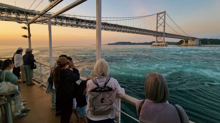 夕陽に染められ神秘的な光に包まれた渦潮は言葉では表せない美しさです。