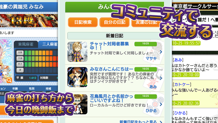 伝言板、メッセージなどの交流機能もあり麻雀友達を作ることもできます!
