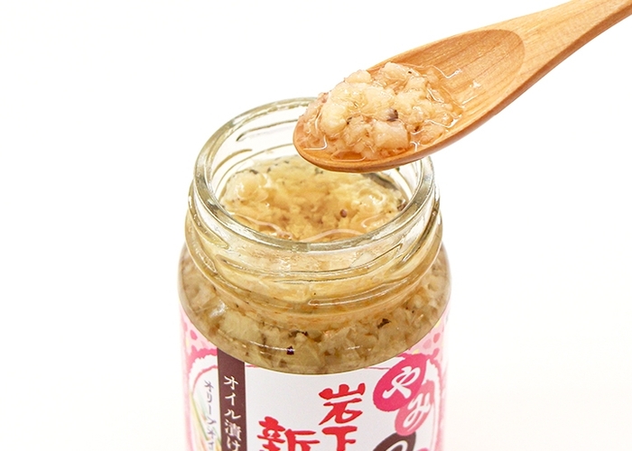 爽やかな風味とやさしい辛さが特長の「岩下の新生姜」を刻んで、オリーブオイルとなたね油でオイル漬けにしました。
