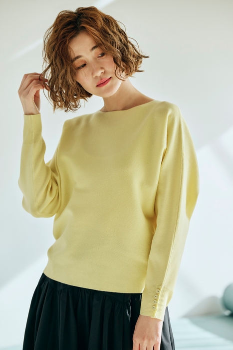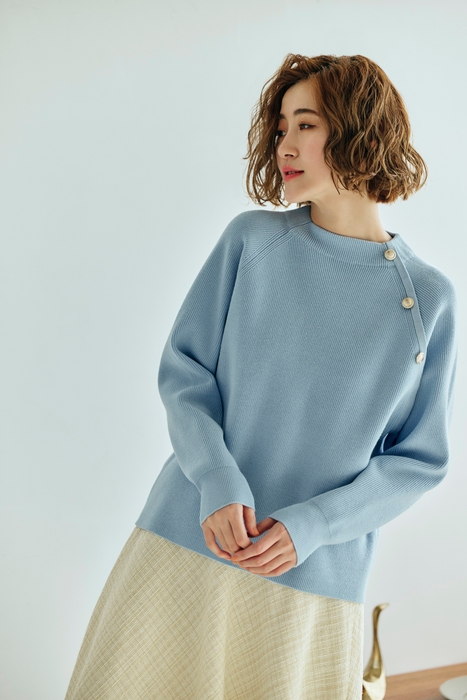 リラクシー感がありながら、袖口のスリットやボタン使いなどでカジュアルに見えすぎないプルオーバーデザインのニットは、