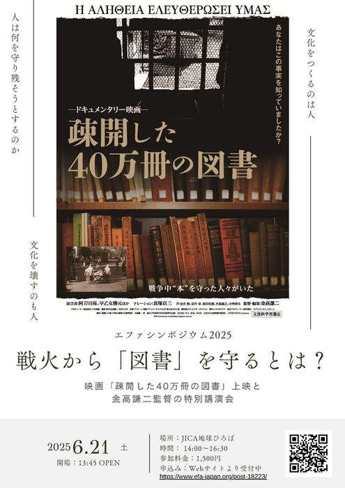 ※当日現金でお支払いをいただく場合は「【当日会場払い(1,500円)・出欠管理のみ】戦火から「図書を守る」とは?エファシンポジウム2025」をお選びください。会場の受付にて、お支払いのほど、よろしくお願いいたします。