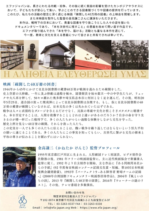 エファが取り組んできた「本を守り、届ける」活動とも重なる本作を通じて、今一度、教育と文化を支える意義について皆さまと共有できれば幸いです。
