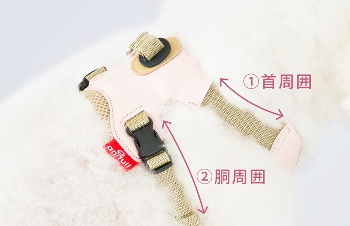首周囲と胴周囲のどちらも調節できるように工夫したことで、超小型~中型のワンちゃんにしっかりフィットするよう設計しました。
