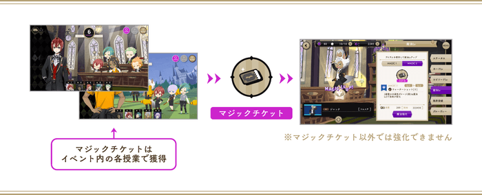 R ジャック[ツムステ]、R エペル[ツムステ]、R セベク[ツムステ]の魔法強化は本イベントの授業で獲得できる「マジックチケット」を使用します。