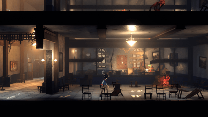 本作最大の特徴は、2D横スクロールアクションに、奥行きを加えたマップシステム。設置されたパズルを解いて町の秘密を解き明かしていくことで、奇妙なダークファンタジー世界を探索していく新鮮な楽しさが待っています。道中に現れる謎のモンスター「VILE」(ヴァイル)を倒して吸収することで、彼らの力を受継ぐことができ、その力を駆使することで、マップの攻略の手助けだけでなく、より凶悪な敵をも倒せるようになります。