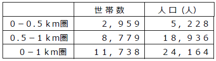 ・店舗から500m圏内は、昼間人口が常住(夜間)人口の3倍以上になるのが特徴です。