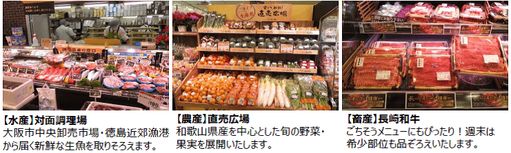 鮮度や産地にこだわった生鮮食品や、お祝いやごちそうにおすすめのこだわり商品を豊富に品ぞろえいたします。また、カット済み・味付け済みで簡単に調理できる「時短」商品も充実しております。