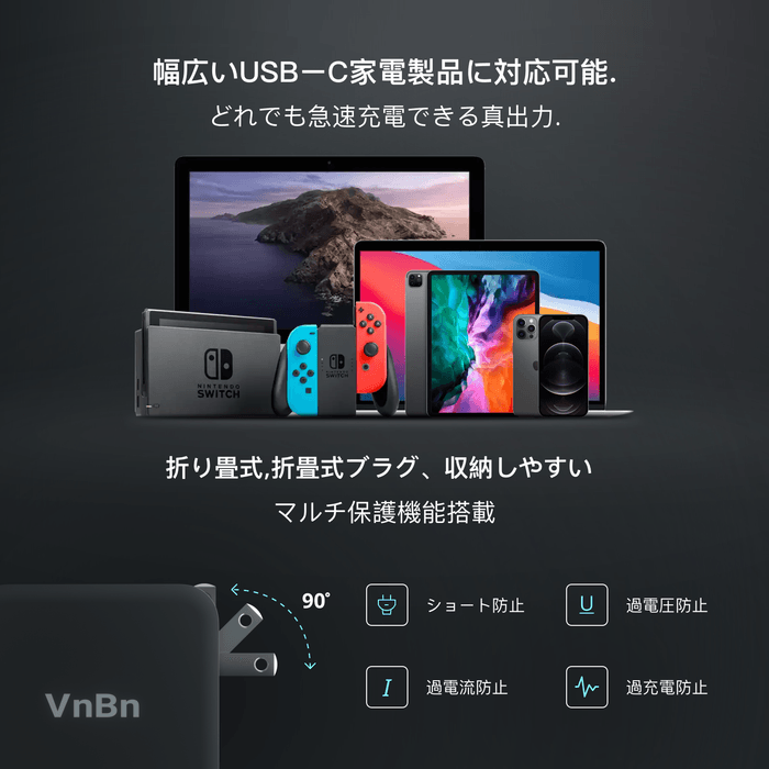 対象商品 :VnBn 100W ブラック GaN急速充電器(2mのType-Cケーブル付属)