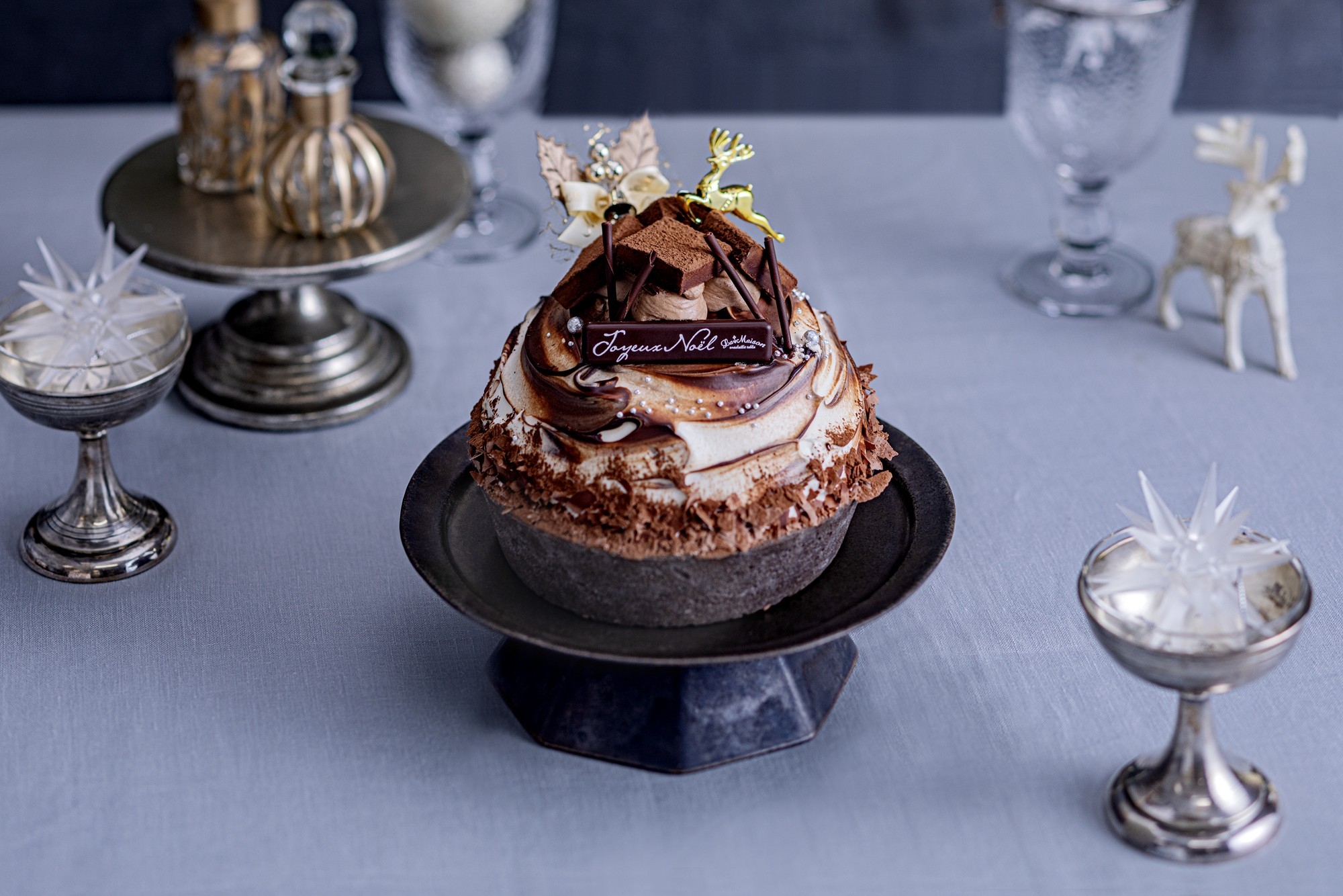 詳細:ベルギー製のチョコレートを使用したチョコレートムースで紅茶のムースを包み、アクセントにチョコレートクランチと甘酸っぱいベルガモット&アプリコットのジャムをしのばせ、ショコラベイクドチーズタルトに重ねました。とろける生チョコレートを贅沢に飾った、クリスマスだけのチョコレートタルトです。