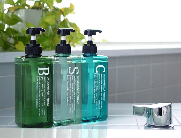 1本あたりの容量は約600mlで市場で販売している詰め替え用のシャンプー、コンディショナーにほぼ対応しています。