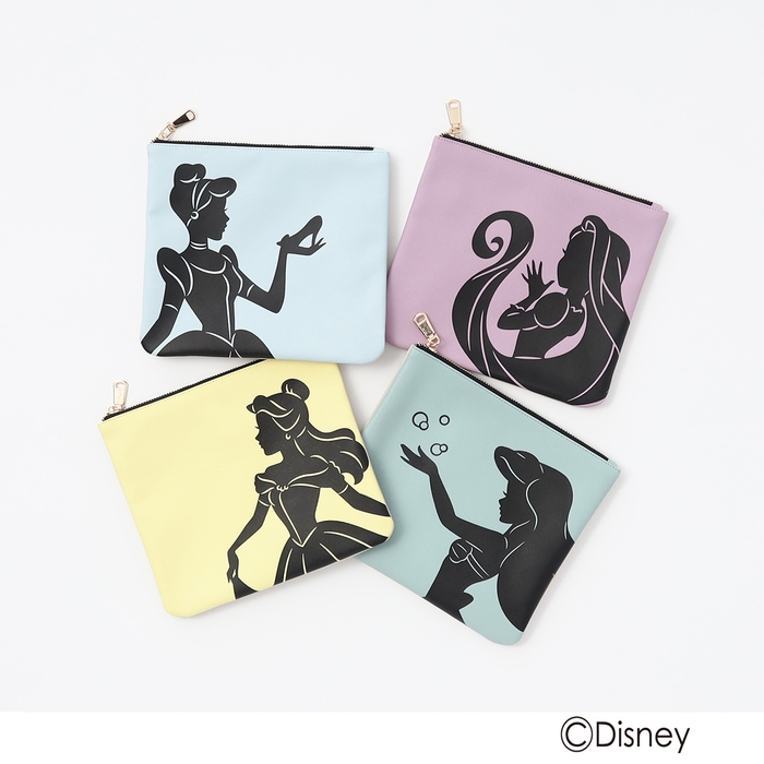 ポップなカラーが目を引くポーチに、プリンセスをシャドーで表現したデザイン。