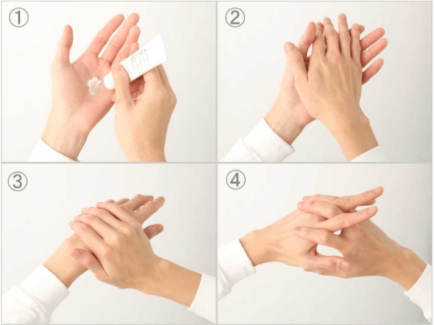 ①適量ハンドクリームを手のひらに取る