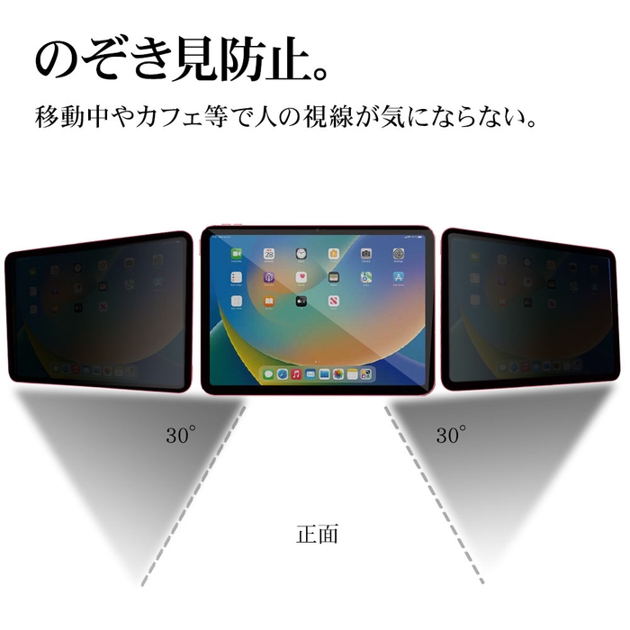 特殊ブラインド加工により、横置きのとき、ディスプレイの表示を見えにくくし、のぞき見を防止します。