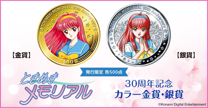 『ときめきメモリアル』の30周年を記念して、 藤崎詩織の笑顔が浮かぶカラー金貨・銀貨が登場!