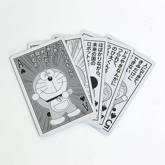 変わり種のコチラは、ドラえもんの名セリフ入りのトランプです。それぞれのカードにドラえもんの名言が書かれているので、思わず読み入ってしまいそう♪