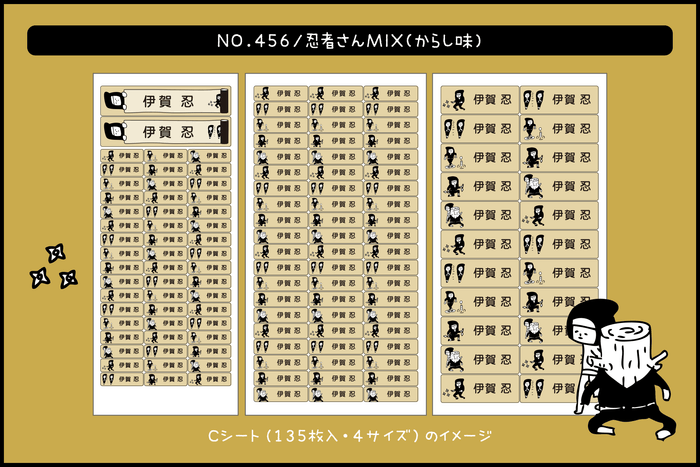 555種類以上のオリジナルデザインで展開している「お名前シール」。子ども向けデザインが多い中で、大人もつかえるデザインとしてラインアップしている[忍者デザイン]は、3カラー展開で販売中です。
