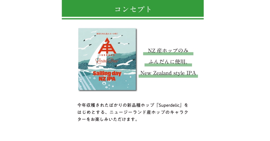 【三重県・ISEKADO】ニュージーランド産ホップだけをふんだんに使った『Sailing day NZ IPA』を数量限定発売