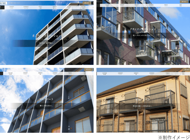 4年間で300サイトを超える制作実績・ノウハウを活用し、2021年より賃貸マンション・アパート向けにも展開を拡大。2022年10月現在で、分譲物件・賃貸物件あわせて600サイト以上の制作実績のあるサービスです。