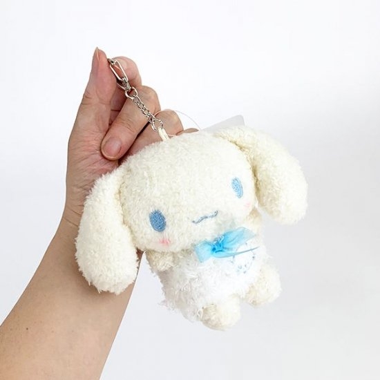 クリーム色のシナモロールにホワイトのお洋服が素敵!手に持ってみると結構大きめサイズでふわふわのボリュームもしっかりあります。