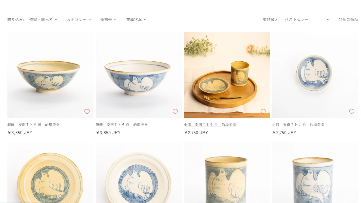 KOTOPOTTERでは、陶房「nagusa」のうつわをオンラインショップにて販売いたします。的場さんが得意とする安南手の技法を生かしたうつわを厳選し、愛らしいトリのデザインで、シンプルながらも味わい深い焼き物の魅力をお楽しみいただけます。