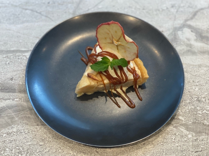 じっくり甘みを出して焼き上げた、りんごのタルト。暖かいタルトと冷たいバニラアイス、キャラメルソースがマッチして、幸せな気分に…♡